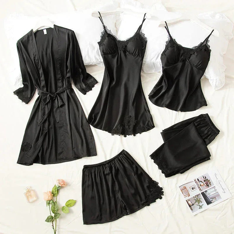FawaQa | 5 Piece Royal Bridal Silk Night Gown set